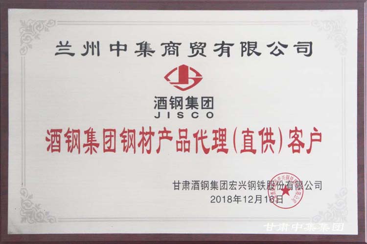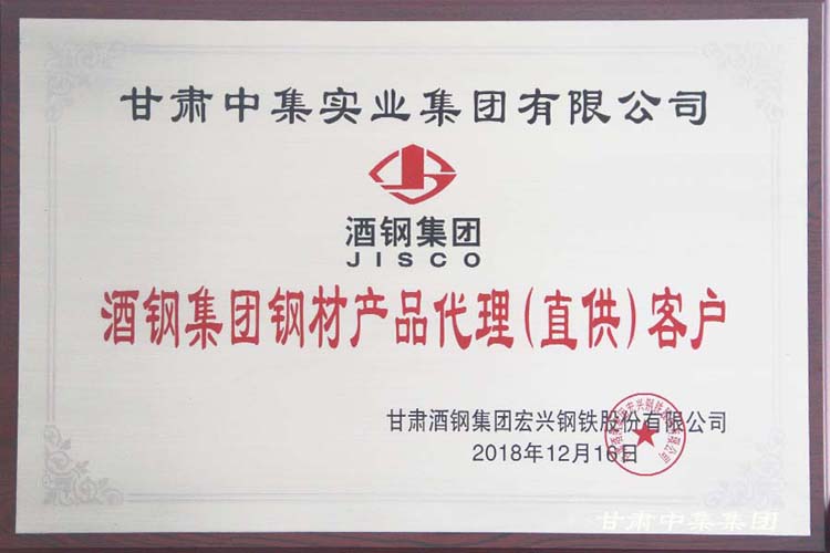 熱烈祝賀甘肅中集實(shí)業(yè)集團(tuán)有限公司榮獲酒鋼集團(tuán)“2018年度金牌代理商”殊榮