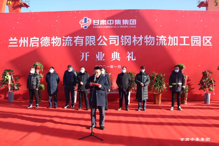 2021年1月12日上午10:18分,甘肅中集實業(yè)集團有限公司旗下蘭州啟德物流有限公司河口鋼材物流加工園區(qū)開業(yè)慶典在甘肅物產(chǎn)集團河口物流園隆重舉行。甘肅中集實業(yè)集團有限公司黨委書記、董事長周啟濤隆重宣布物流園開業(yè)。酒鋼集團、八一鋼鐵集團、內(nèi)蒙古包鋼集團、甘肅省物產(chǎn)集團河口物流園、甘肅省鋼材商會、物流園轄區(qū)及公司合作伙伴等100余名領導嘉賓參加開業(yè)慶典。